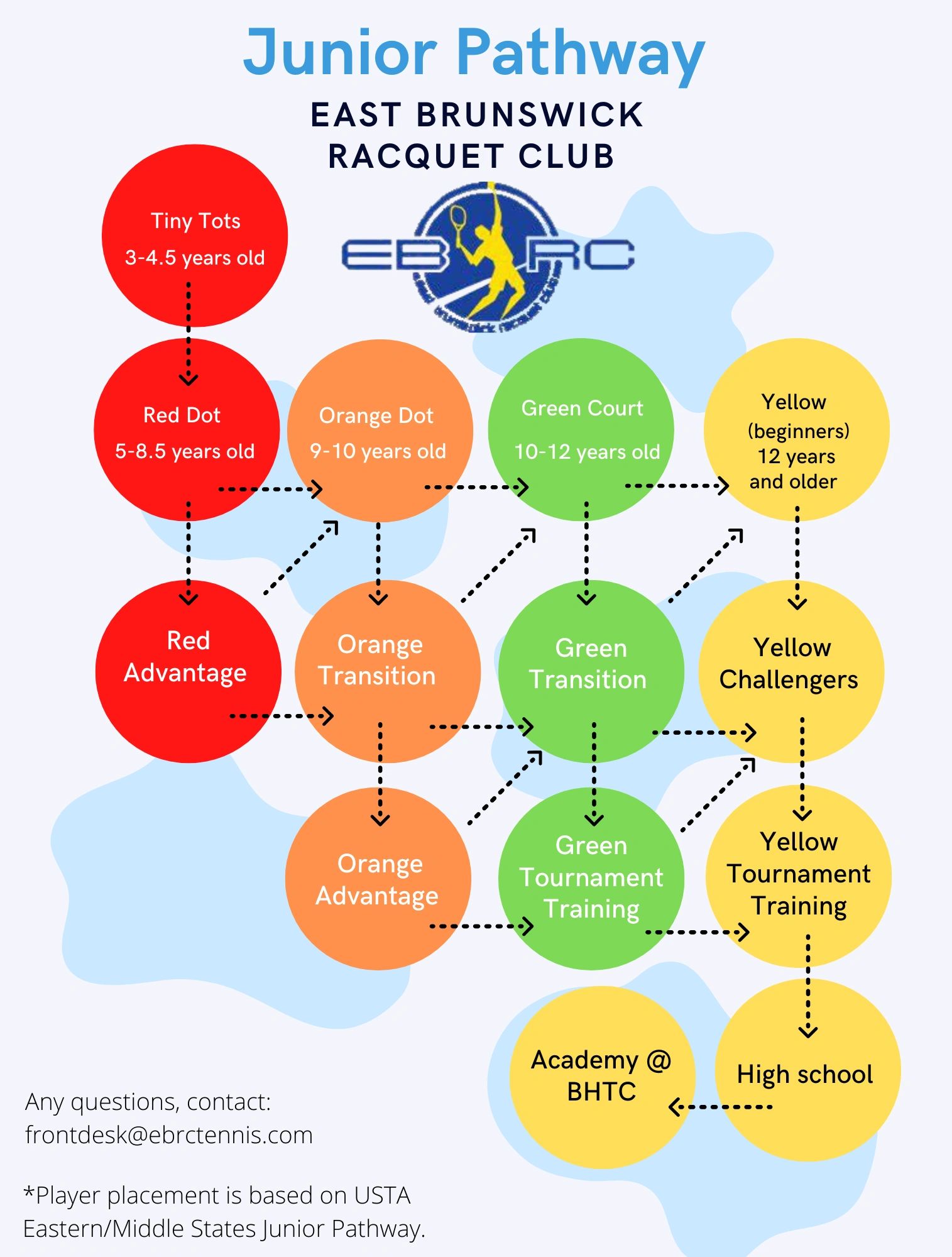 High School: (Ages TBD) EBRC' High School program is for players who are competing or are ready to compete in Middle and High School team tennis.